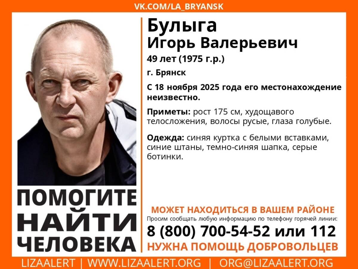 В Брянске без вести пропал 49-летний Игорь Булыга. С 18 ноября его местонахождение неизвестно.