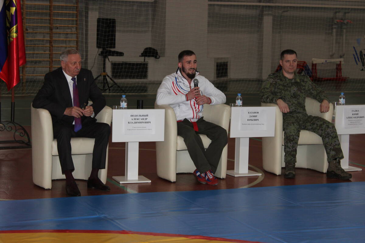 Затем все собравшиеся могли пообщаться с чемпионом мира и задать свой вопрос. Также Дамир Казанов провёл мастер-класс для обучающихся спортивной школы отделения «Рукопашный бой». А ещё все желающие смогли получить автограф титулованного спортсмена и сфотографироваться с ним на память.