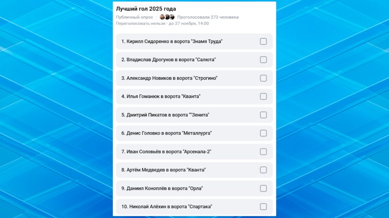 В группе команды в соцсети «ВКонтакте» появился опросный лист и видеоподборка забитых динамовцами голов. Их десять - из них предстоит выбрать один, хотя сделать это будет непросто.