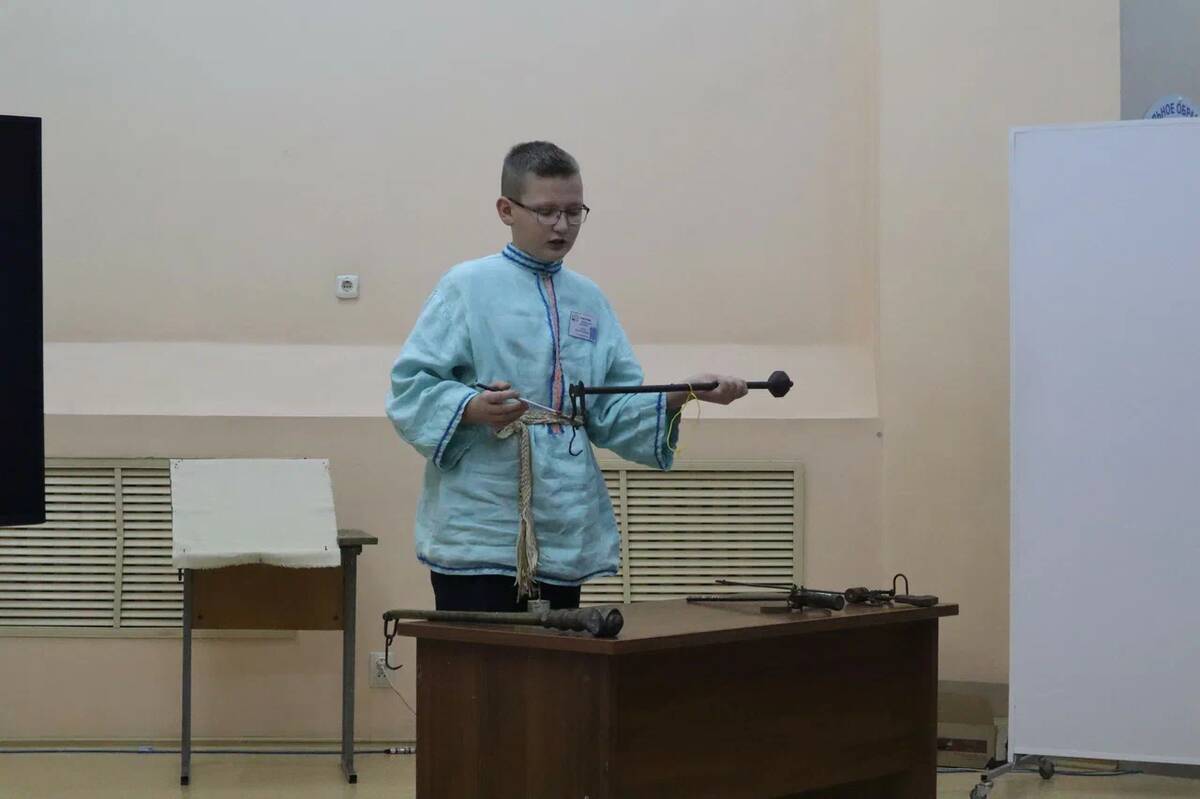 На суд зрителей и жюри участники представили авторские мини-экскурсии по предметам, найденным юными музееведами за последний год. Так, Мишковский музей «Истории и народного быта» (руководитель Василий Чулов) представил юный экскурсовод, ученик 6 класса Александр Репный. Он поведал о наборе металлических безменов.