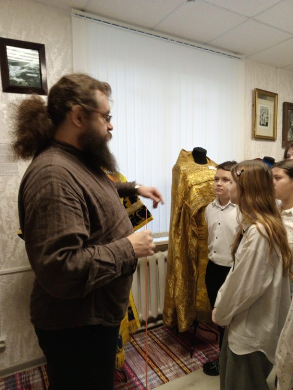 Библиотекарь провела ребят по залам музея, где настоятель Преображенского собора, отец Михаил, рассказал им о быте старообрядцев, показал редкие книги, напечатанные по особой клинцовской технологии.