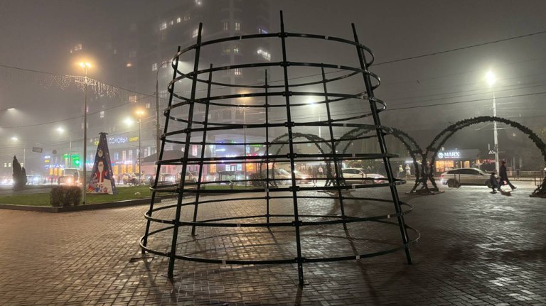 Она станет главным объектом праздничного оформления любимого места отдыха горожан. Пока установлена только нижняя часть каркаса.