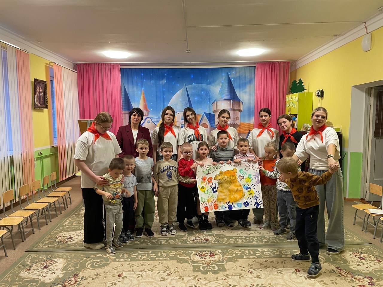 Ребята отправились в МБДОУ - детский сад комбинированного вида «Рябинка», где вместе с дошкольниками решили создать большую поздравительную открытку к этому замечательному празднику. Ребята с энтузиазмом взялись за дело: активно раскрашивали рисунки, выбирали свои любимые цвета для ладошек и оставляли яркие отпечатки.
