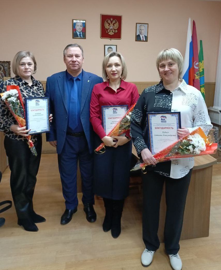 От имени руководителя Брянского регионального исполнительного комитета Брянского регионального отделения Партии «Единая Россия» А.А.Сотникова поздравил членов и сторонников Всероссийской политической партии «Единая Россия» с Днем её образования и вручил благодарности за проявленную активность в использовании мобильного приложения «ВВЕРХ» секретарям первичных отделений Партии Логуновой Вере Владимировне, Кедысь Светлане Александровне, Араповой Кристине Анатольевне.