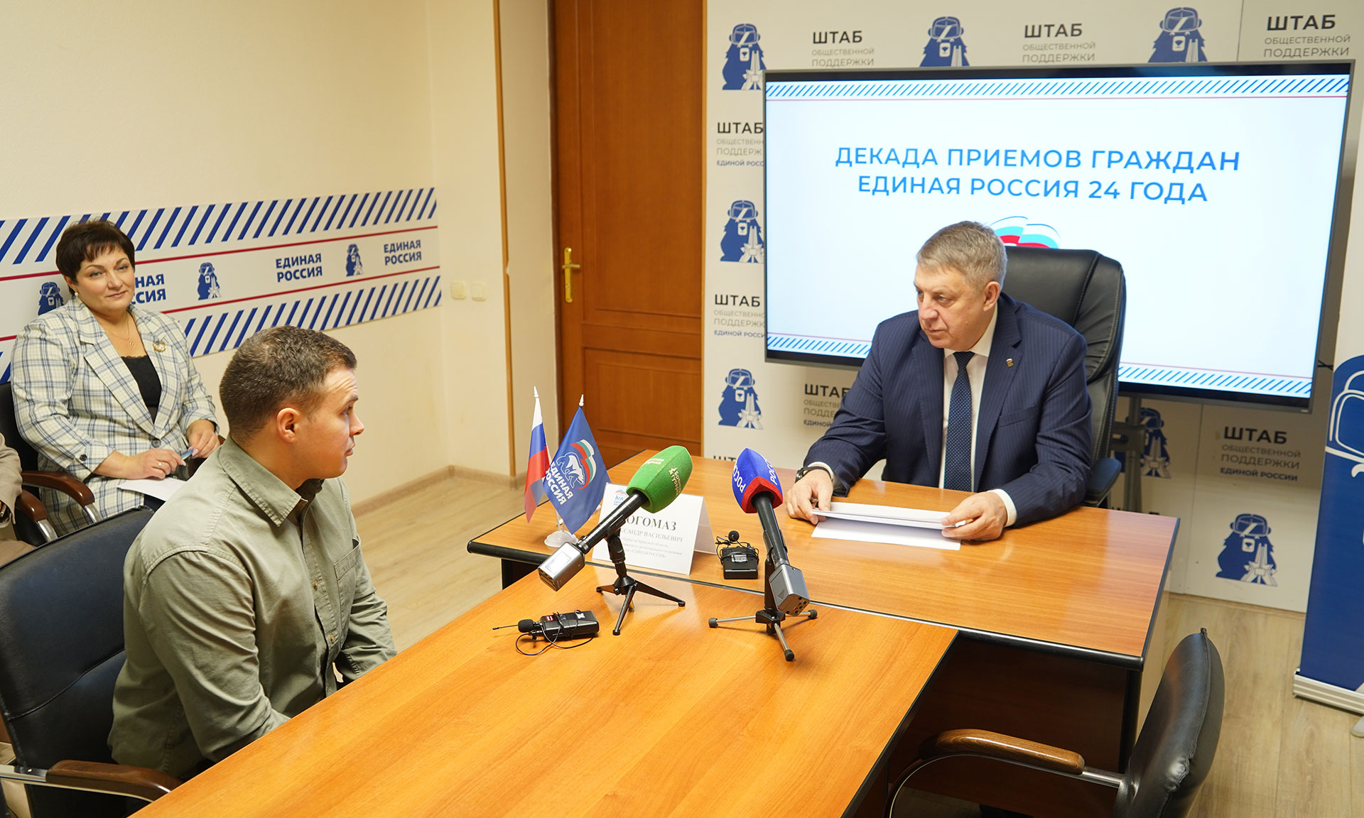 2 декабря Губернатор Брянской области, секретарь Брянского регионального отделения Всероссийской политической партии «Единая Россия» Александр Богомаз провел прием граждан в штабе общественной поддержки Всероссийской политической партии «Единая Россия».