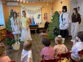 Волонтеры МБОУ - СОШ № 7 и руководитель инфоцентра Бакуло Т.В. приготовили для малышей новогоднюю сказку с играми, загадками и танцами.