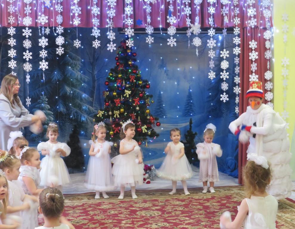 Замечательных Петрушек и Снежинок из второй младшей и средней групп, которые вместе со Снеговиком и Снегурочкой помогли Петрушке найти сбежавшие башмачки.