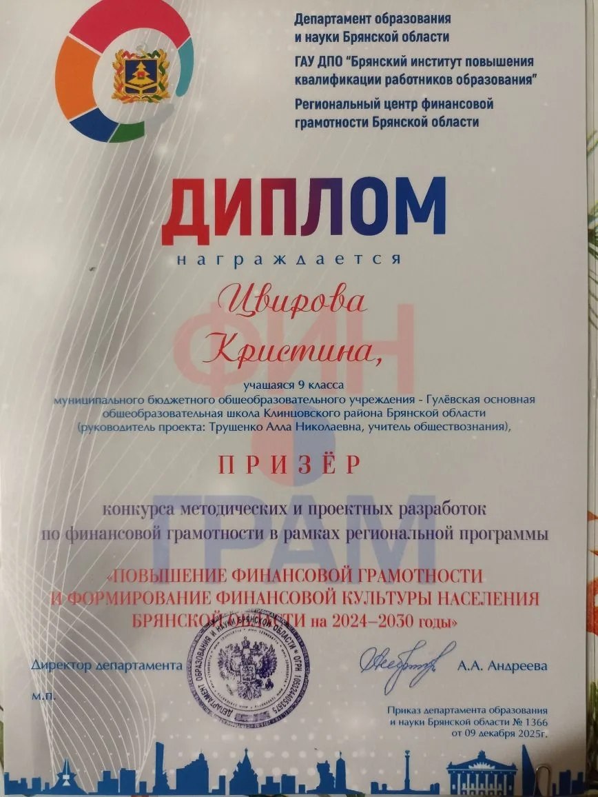 В Брянской области завершился конкурс методических и проектных разработок по финансовой грамотности, проводившийся в рамках региональной программы «Повышение финансовой грамотности и формирование финансовой культуры населения Брянской области на 2024–2030 годы».