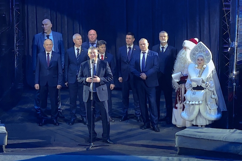Для юных гостей Губернаторской елки было подготовлено представление. Дед Мороз и Снегурочка вручили им подарки. Затем дети посмотрели цирковое шоу «Стойкий оловянный солдатик».