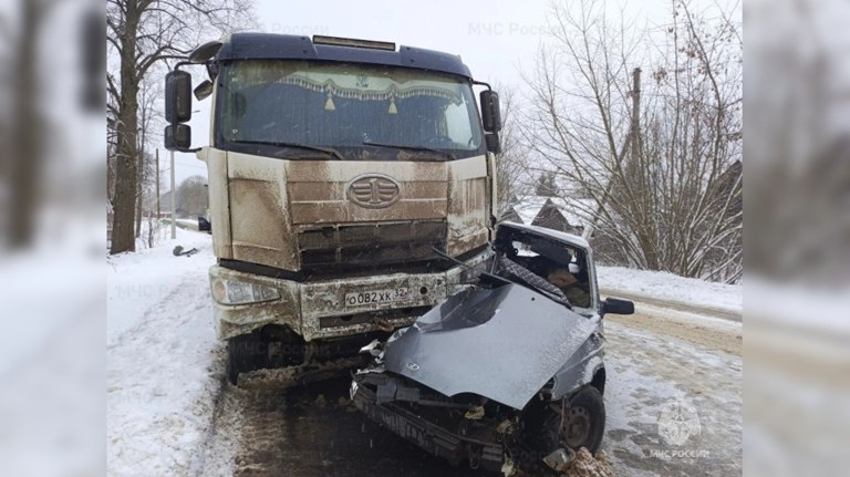 Большегруз раздавил «Ладу» на трассе в Брянской области: есть пострадавший