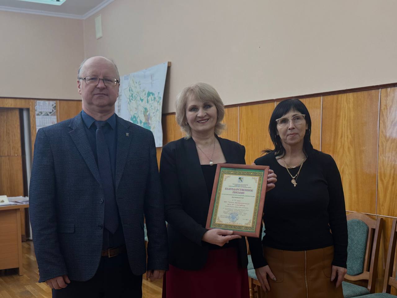 Накануне новогодних праздников глава администрации Александр Викторович Юрлов вручил благодарственное письмо учащимся и классному руководителю 9 "Г" класса средней общеобразовательной школы №9 г. Новозыбкова.