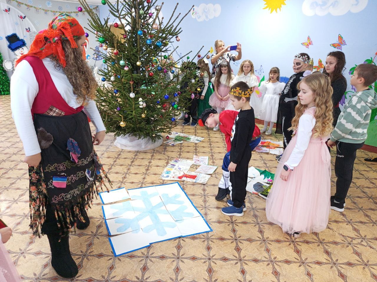 Старшеклассники подготовили новогоднюю программу для ребят и они оказались в настоящей новогодней сказке, где им встретились волшебные персонажи. На празднике звучали песни, стихи, новогодняя дискотека с конкурсами.