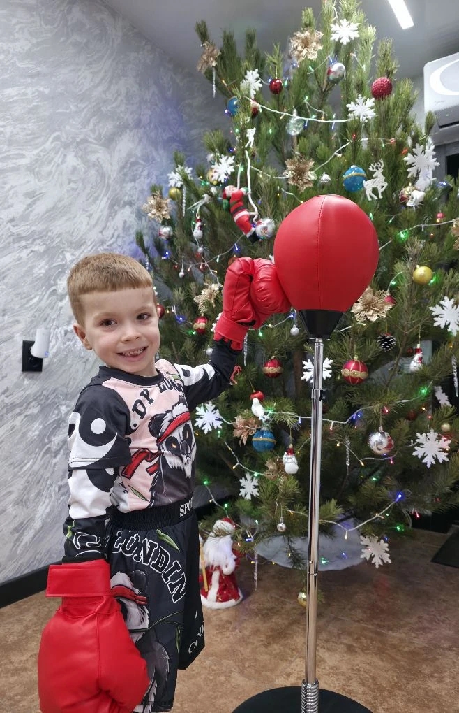 Он получил боксёрские перчатки. Брянский губернатор обратился к мальчику с наилучшими пожеланиями и новогодними поздравлениями.