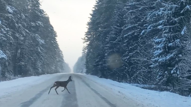 Под Жуковкой качество уборки дорог от снега проверила косуля