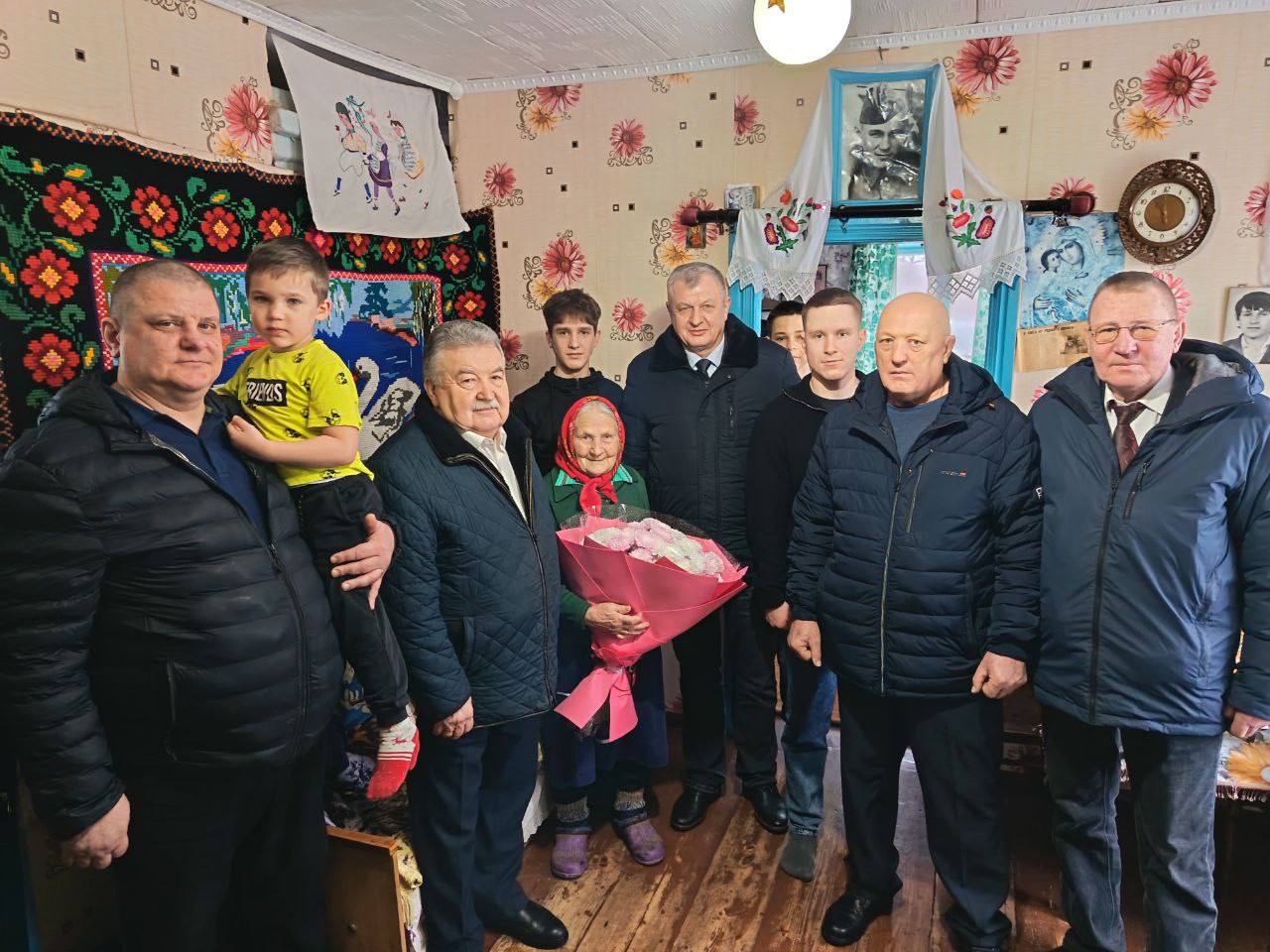 Глава администрации района В.А. Дуды, глава Унечского района А.М. Кускова, Герой России А.В. Постоялко, глава Красновичского сельского поселения В.И. Понедько и председатель районного Совета ветеранов А.В. Владимиров поздравили Раису Васильевну с юбилеем, пожелали крепкого здоровья, счастья и долгих лет жизни, поздравили и с великим праздником Рождества Христова!