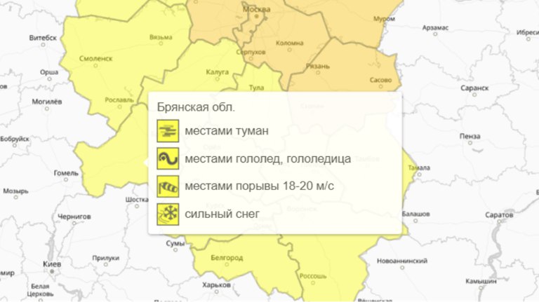 Жёлтый уровень погодной опасности продлили в Брянской области