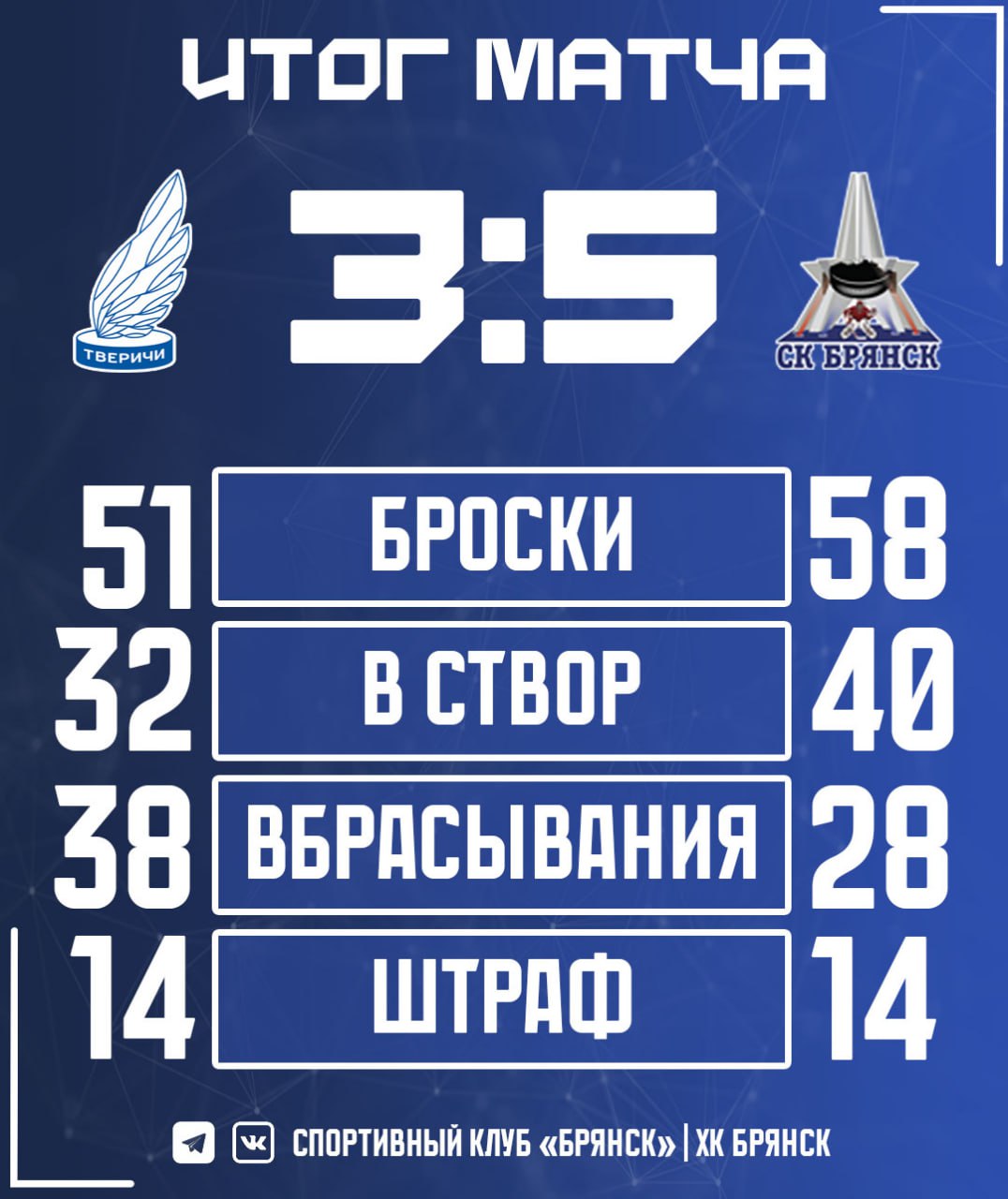 ХК "Брянск" одержал победу на выезде над "Тверичами-СШОР". Итог встречи 3:5