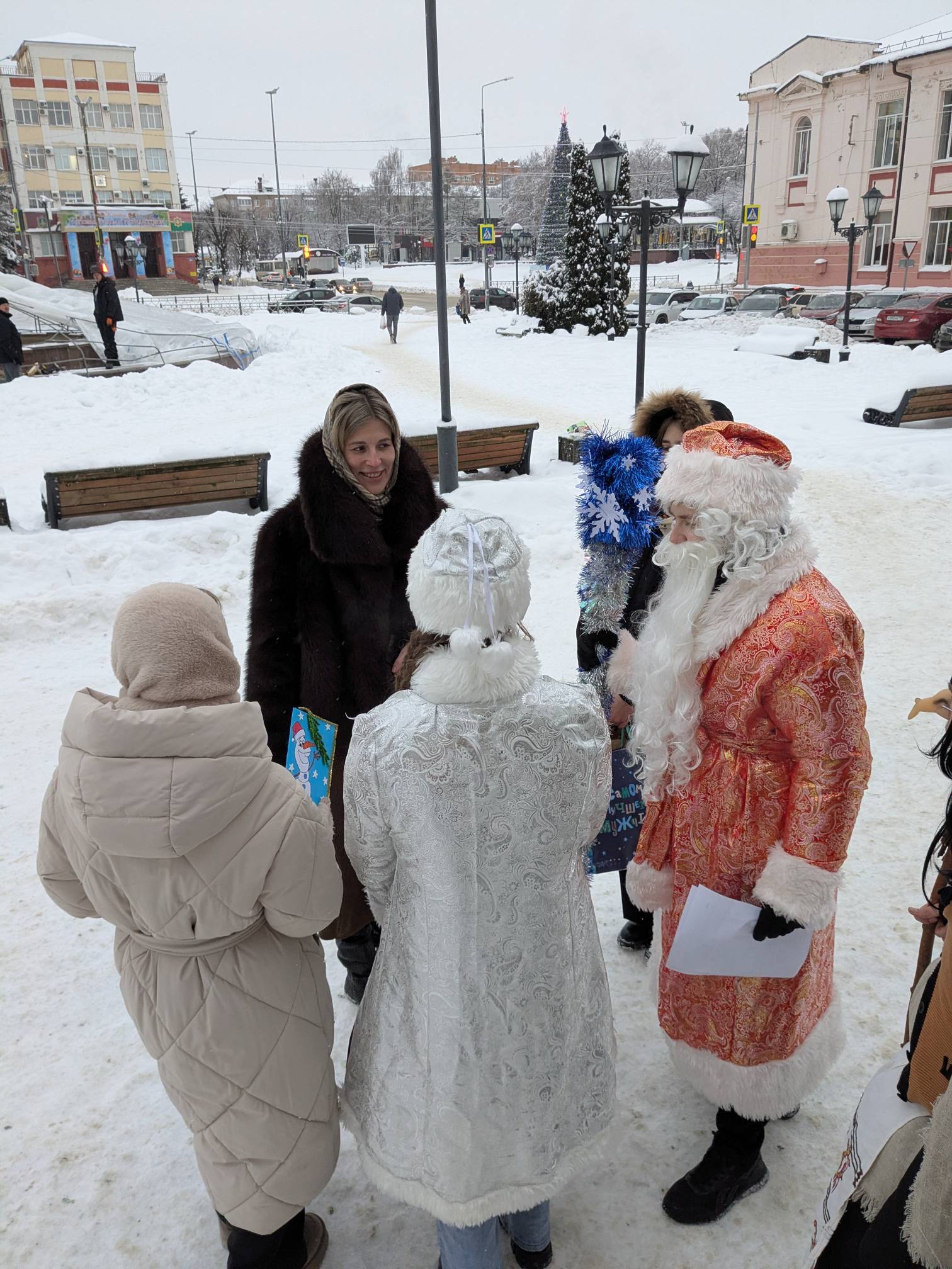В своём поздравлении юные управленцы пожелали клинчанам крепкого здоровья и бодрости духа, семейного тепла и взаимопонимания, радости от каждого прожитого дня и мира. Ребята подарили жителям города поздравительные открытки, которые изготовили обучающиеся школ города, загадали загадки о Новогодних праздниках и подарили сладкие призы.