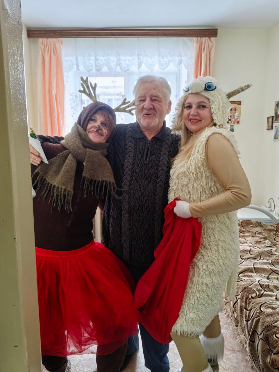 В Дарковичском доме-интернате для престарелых и инвалидов, в прекрасный морозный денёк, ряженые порадовали наших подопечных одной из самых увлекательных зимних забав – колядованием. Исполняли приговоры и пели песни, обращаясь к получателям социальных услуг и сотрудникам, а ещё плясали, осыпали зерном на счастье, желали здоровья и благополучия. Всех с головой захватил это процесс, народные колядки подняли всем настроение и добавили улыбок.