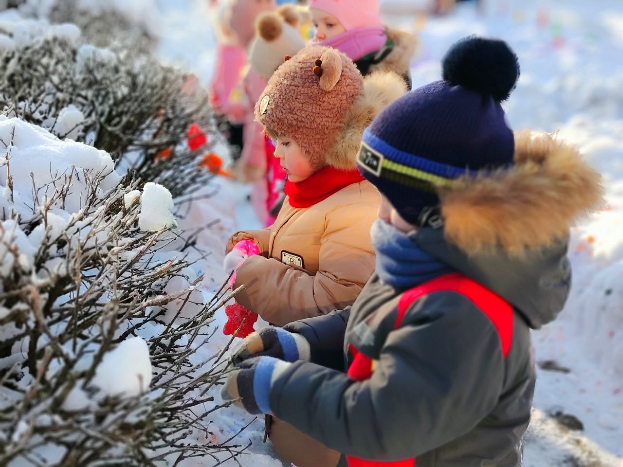 Дети с визгом и смехом покоряли снежные горки на ватрушках и санках, ощущая чистый восторг! Строили неприступные крепости, создавали волшебные ледяные фигуры и раскрашивали яркими цветными льдинками, которыми потом украшали участки. А ещё ходили на лыжи и играли в хоккей!