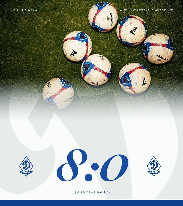 Итоговый счёт был 8:0. 5 голов в игре принадлежат Даниилу Коноплёву. Ещё 2 мяча забил Андрей Мелведев. А Владислав Дрогунов успешно выполнил пенальти, пишет ФК «Динамо-Брянск»