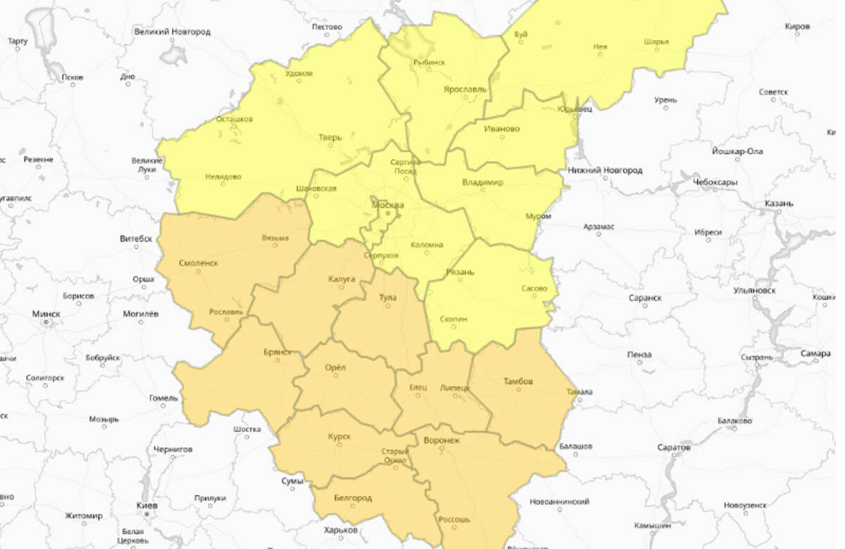 Фото: скриншот, прогностическая карта предупреждений для ЦФО.
