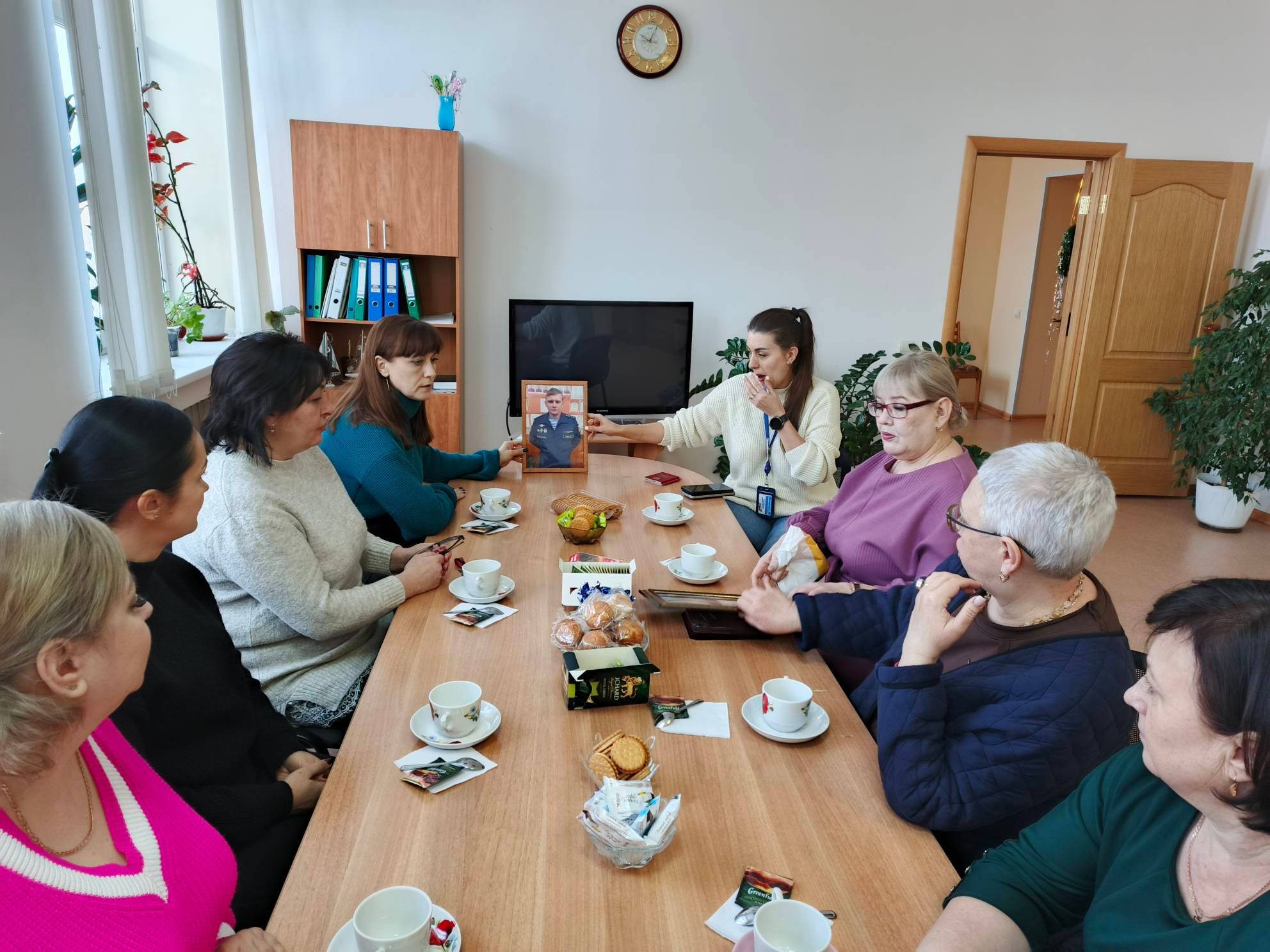 Жены погибших героев мужественно отозвались на предложение сотрудников Центра занятости. В теплой, дружественной обстановке, за чашечкой чая, гости рассказали о своих героических мужьях: о трудностях и лишениях воинской службы, о поступках, которые не измерить приказом и конечно, о подвигах героев, о мужестве, верности и силе духа.