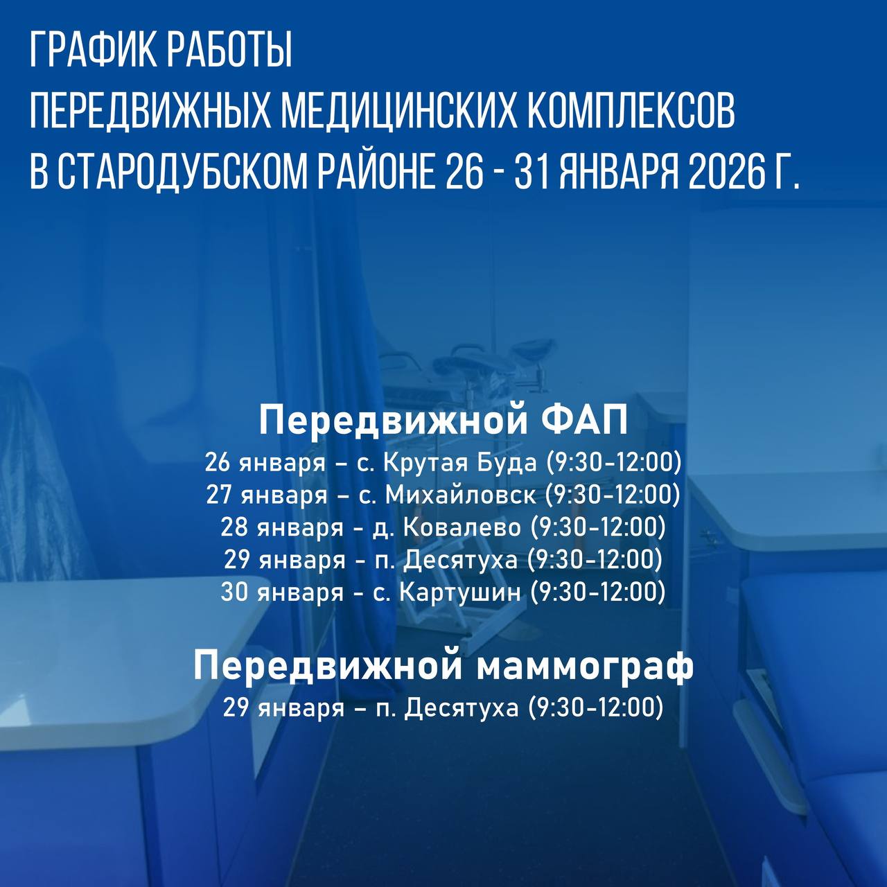 5 февраля 2026 года с 9:30 до 13:00 по адресу г. Стародуб, ул. Семашко, д. 23 специалисты Брянской областной передвижной мобильной станции переливания крови будут осуществлять забор крови.