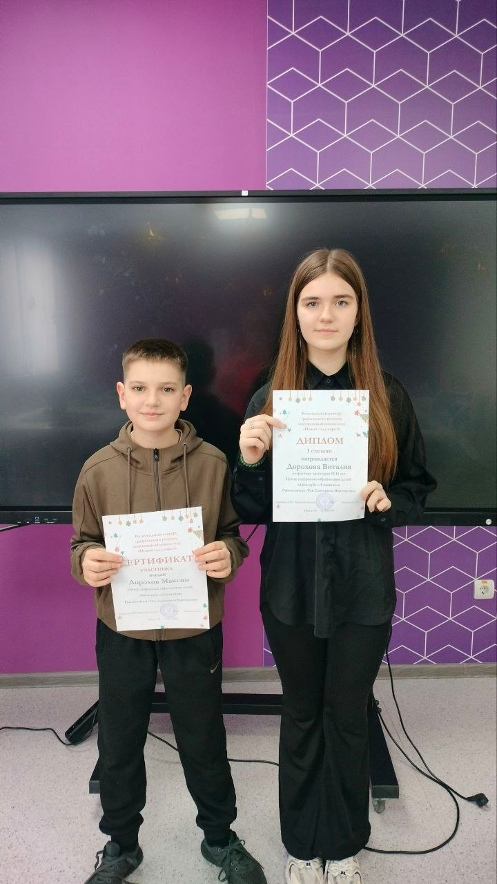 Спешим поделиться еще новостью и поздравить талантливых воспитанников из «АЙТИ-куб» с. Глинищево с участием в региональном конкурсе графического рисунка «Новый год у ворот!»!