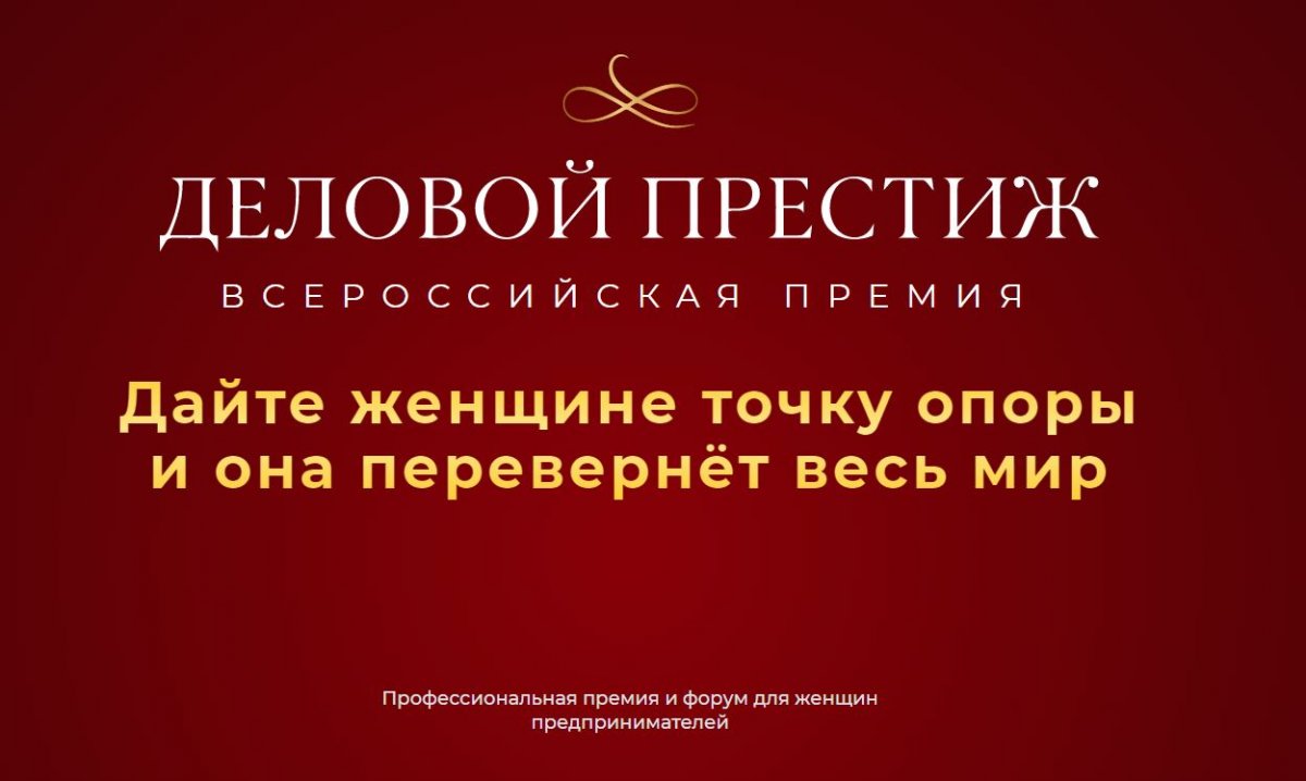 Национальная Всероссийская Премия и Форум «Деловой престиж: женщина – созидатель - 2026». Национальная Всероссийская Премия и Форум «Деловой престиж» проводится с января 2026 г. по май 2026 г., направлена на выявление и поощрение успешных женщин, добившихся значительных результатов в различных отраслях бизнеса, социально-общественной жизни и прочих значимых сферах деятельности в регионах Российской Федерации. Участником Премии может стать женщина - физическое лицо, являющаяся собственником бизнеса или руководителем компании (занимающая руководящую должность).