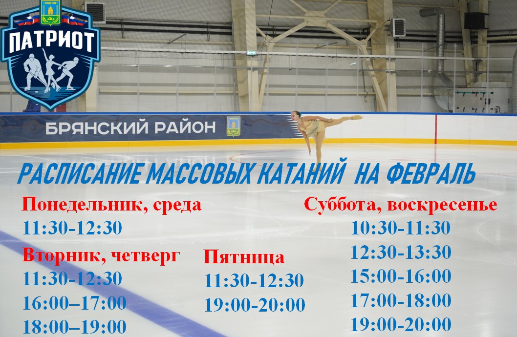 Представляем вашему вниманию расписание массовых катаний во Дворце зимних видов спорта "Патриот" им. В.М. Боброва.