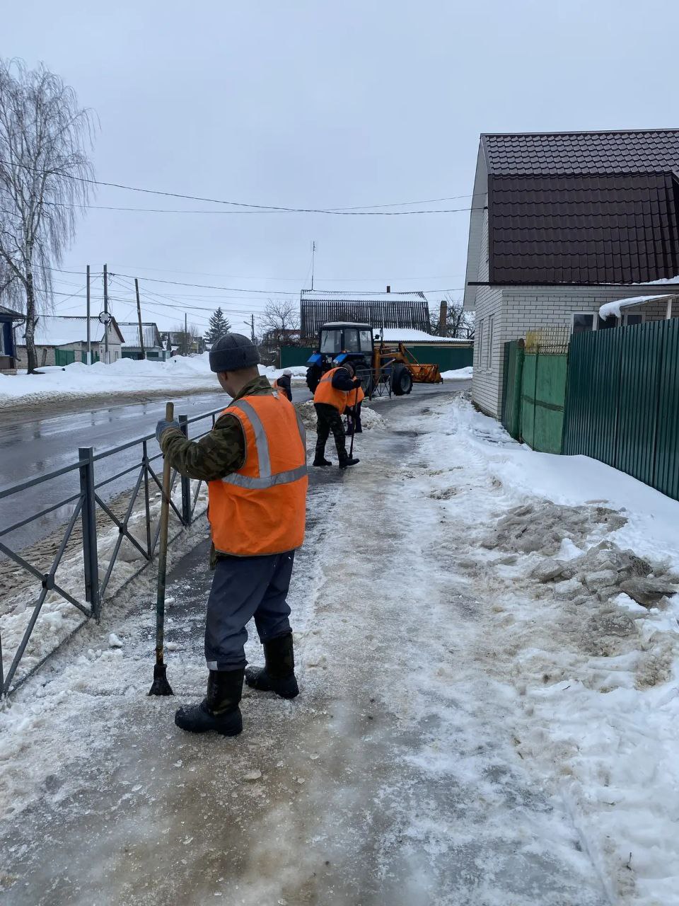 На территории Почепского района с пяти утра проводятся работы по расчистке от снега общественных территорий.