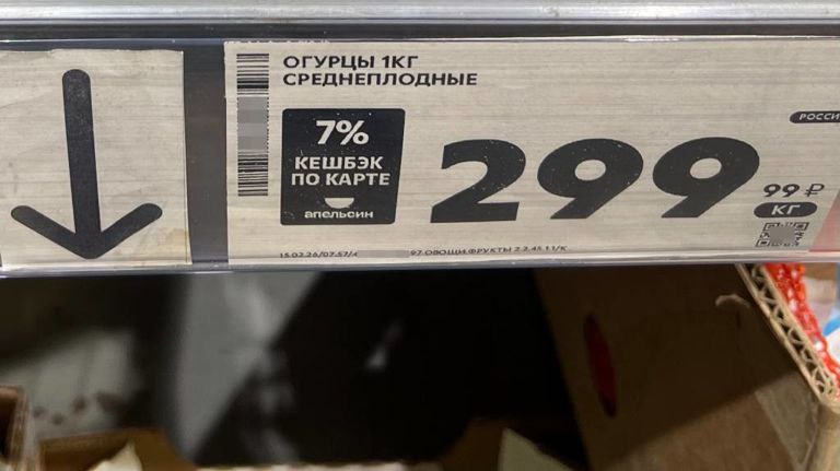 Журналист «Брянской губернии» продолжил мониторить цены на овощи и нашл огурцы, которые стоят заметно дешевле даже тех 360 рублей, о которых сообщалось накануне. Корреспондент обнаружил на полках килограммовую расфасовку огурцов по цене 299,99 рубля.