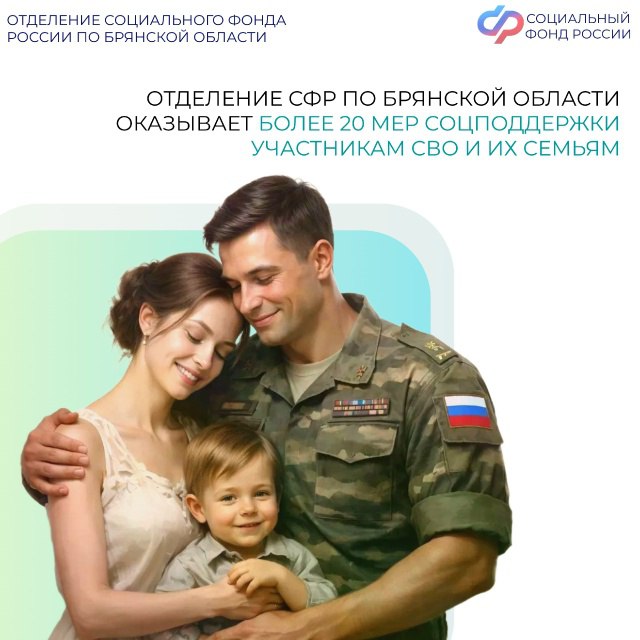 Участники специальной военной операции и члены их семей могут получить через отделение Социального фонда России по Брянской области более 20 мер поддержки: услуги в сфере пенсионного обеспечения, технические средства реабилитации, соцвыплаты. Большинство мер оказывается в беззаявительном порядке. Если порядок получения предусматривает только личное обращение, то всё можно оформить за один визит.