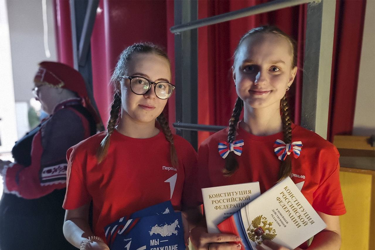 Паспорта, Конституцию РФ, а также фирменные обложки и значки Движения Первых, в торжественной обстановке ребятам вручили: Глава Трубчевского района Василий Васильевич Евсеев, Глава города Трубчевска Николай Иванович Данченко и инспектор отделения по вопросам миграции МО МВД России «Трубчевский», старший лейтенант полиции Анна Григорьевна Боронина.