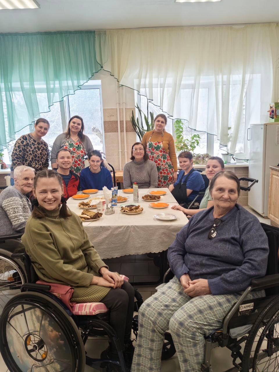 В первый день Масленицы, который называют "Встреча", жители Дарковичского дома социального обслуживания собрались с друзьями из службы "Белые паруса" в уютной бытовой комнате, где провели мастер-класс по приготовлению блинов «Здравствуй, Масленица».