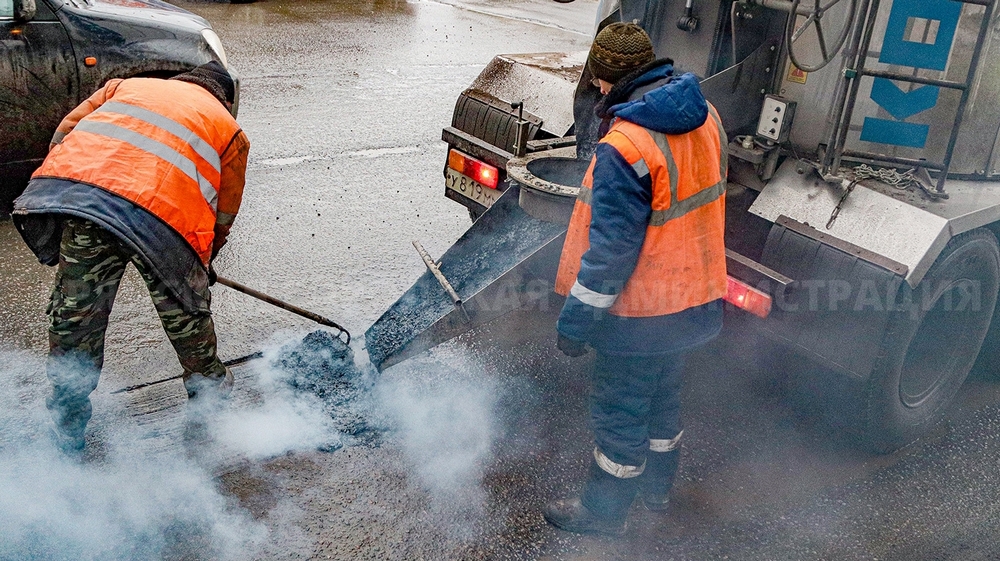 Несмотря на холода, дорожники продолжают вести ямочный ремонт в городе Брянске.