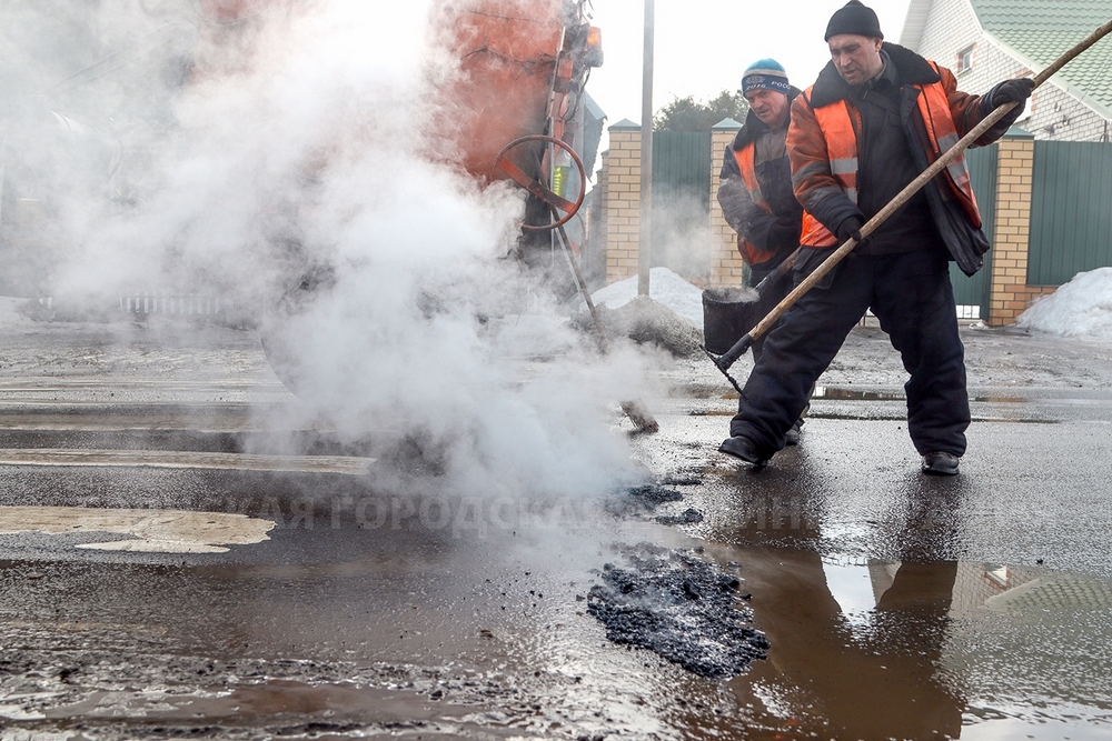 Главная задача специалистов — заделать поврежденный зимой асфальт, не позволить ямам на проезжей части увеличиться. Разрушенную проезжую часть строители очищают и заливают разогретой асфальтовой смесью.