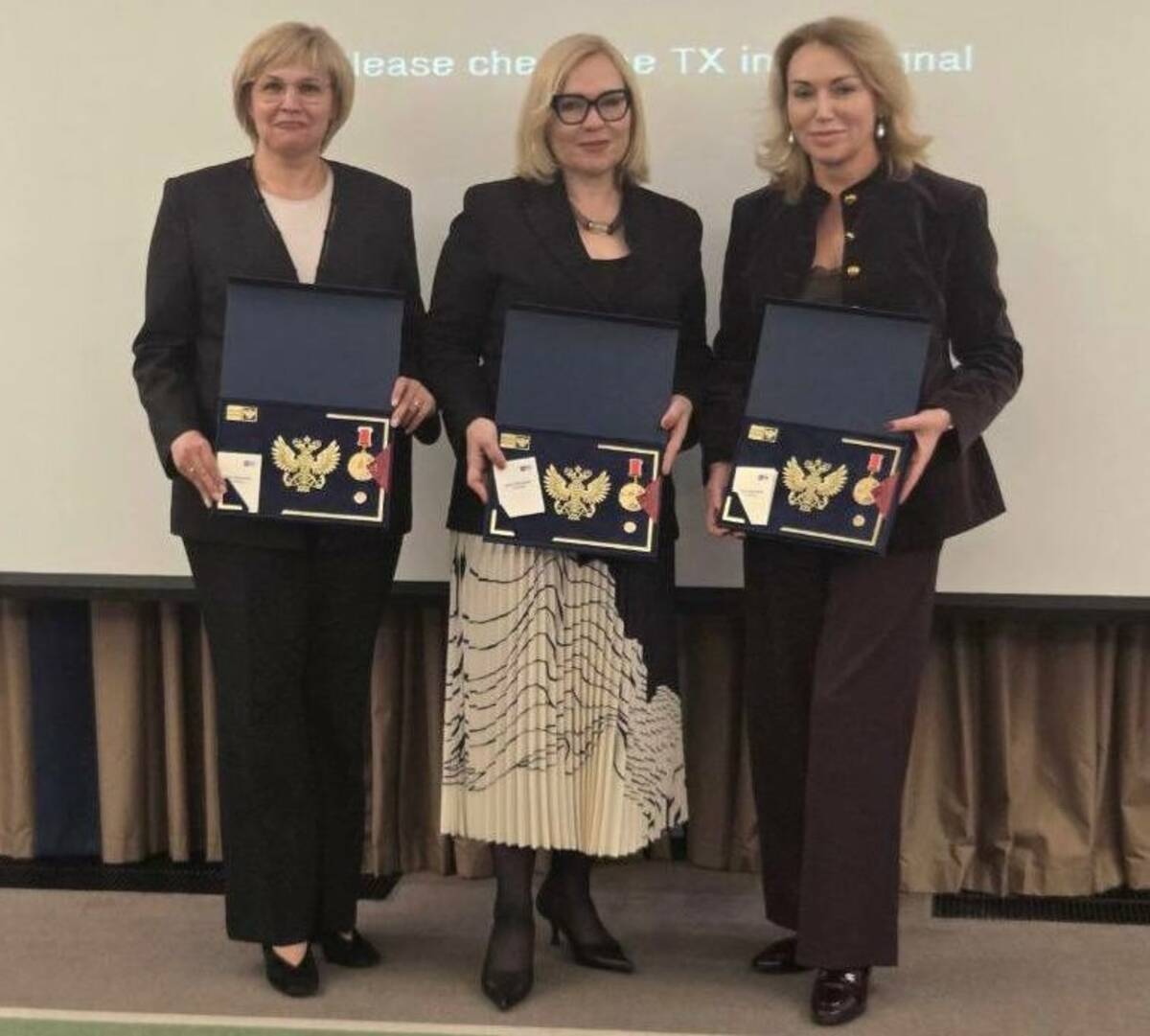 Знаки «За мужество» вручили директорам УФПС Курской области Оксане Бахтиной, Белгородской области Светлане Картамышевой и Брянской области Татьяне Семчук.