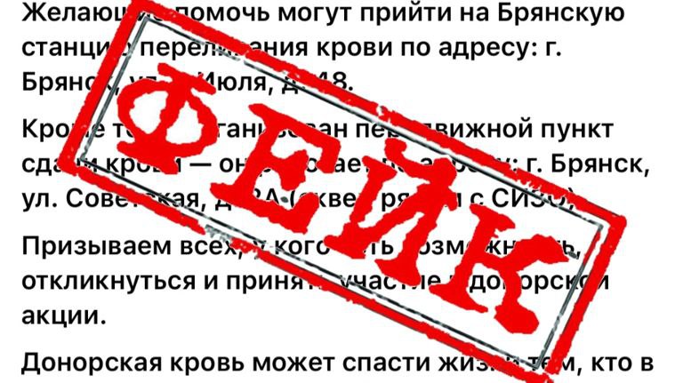 Брянская станция переливания крови опровергла фейк об экстренном сборе крови