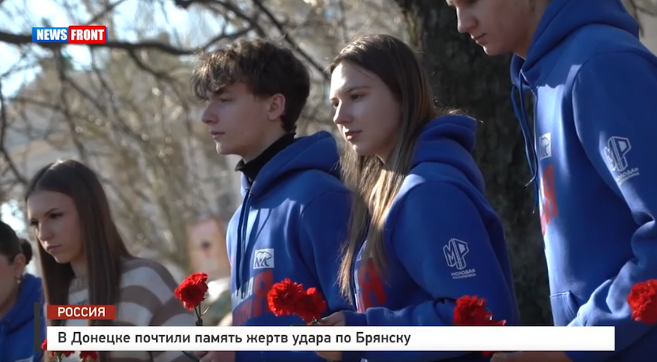 «Трасса Донецк — Горловка перекрыта из-за обстрелов наших мирных машин, автобусов и грузовиков. Обстрелы ведутся украинскими дронами. Также на выходных вы могли наблюдать съезд с Путиловского моста, где враг ударил по больнице. Это почерк террористов, которые вчера ударили по Брянску, погибли люди, уже более 42 раненных. Мы, жители ДНР, переживаем эту боль, мы ее чувствуем. Вчера было все окровавлено в Брянске, поэтому мы сегодня не могли оставаться в стороне и вышли возложить цветы в память о погибших», — сказал Сергей Добровольский, руководитель МГЕР ДНР.
