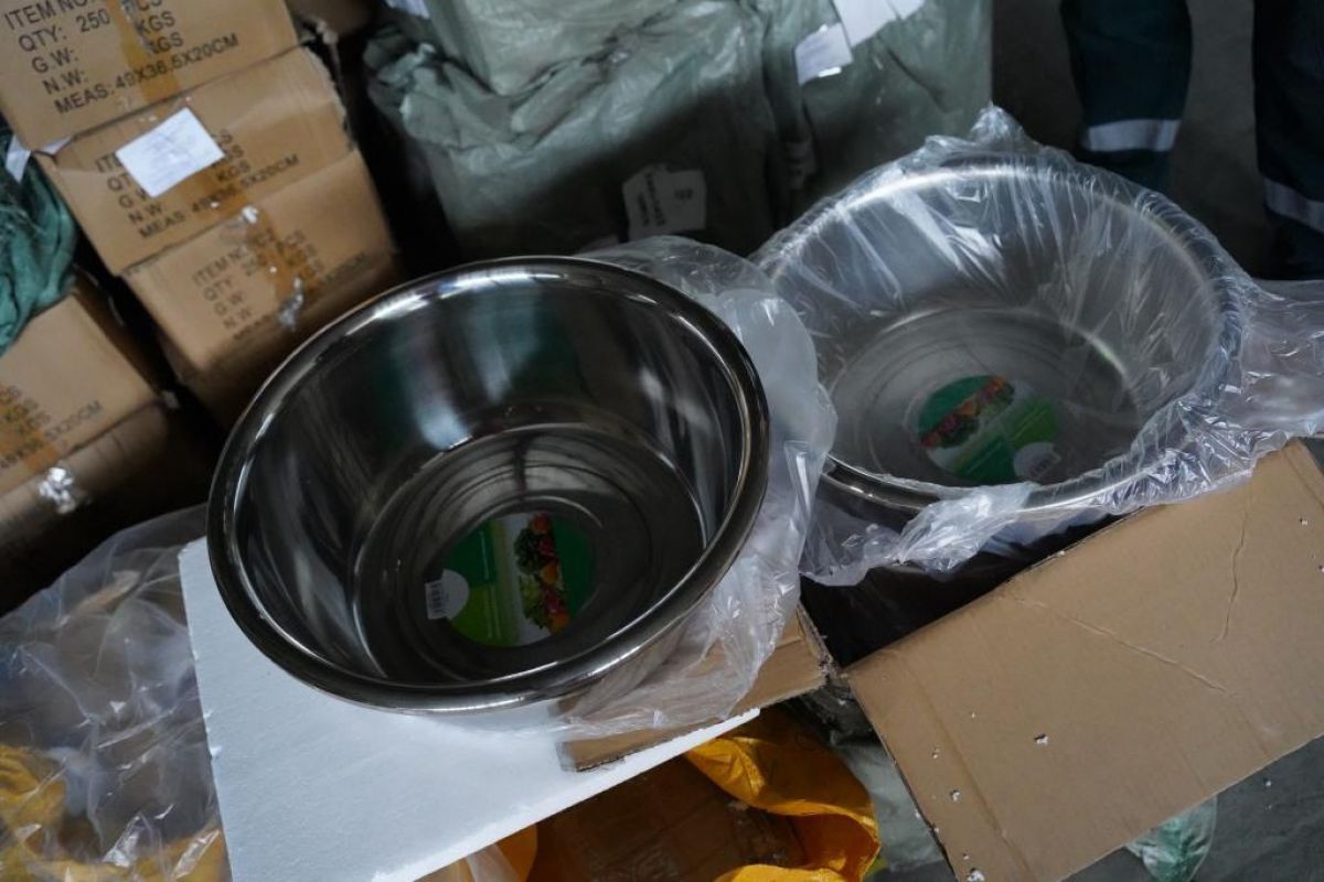 Основную часть груза составили изделия из нержавеющей стали: 9 тонн глубоких мисок, 2,5 тонны кухонных ножей, а также столовые приборы, шумовки и прочий хозяйственный инвентарь.
