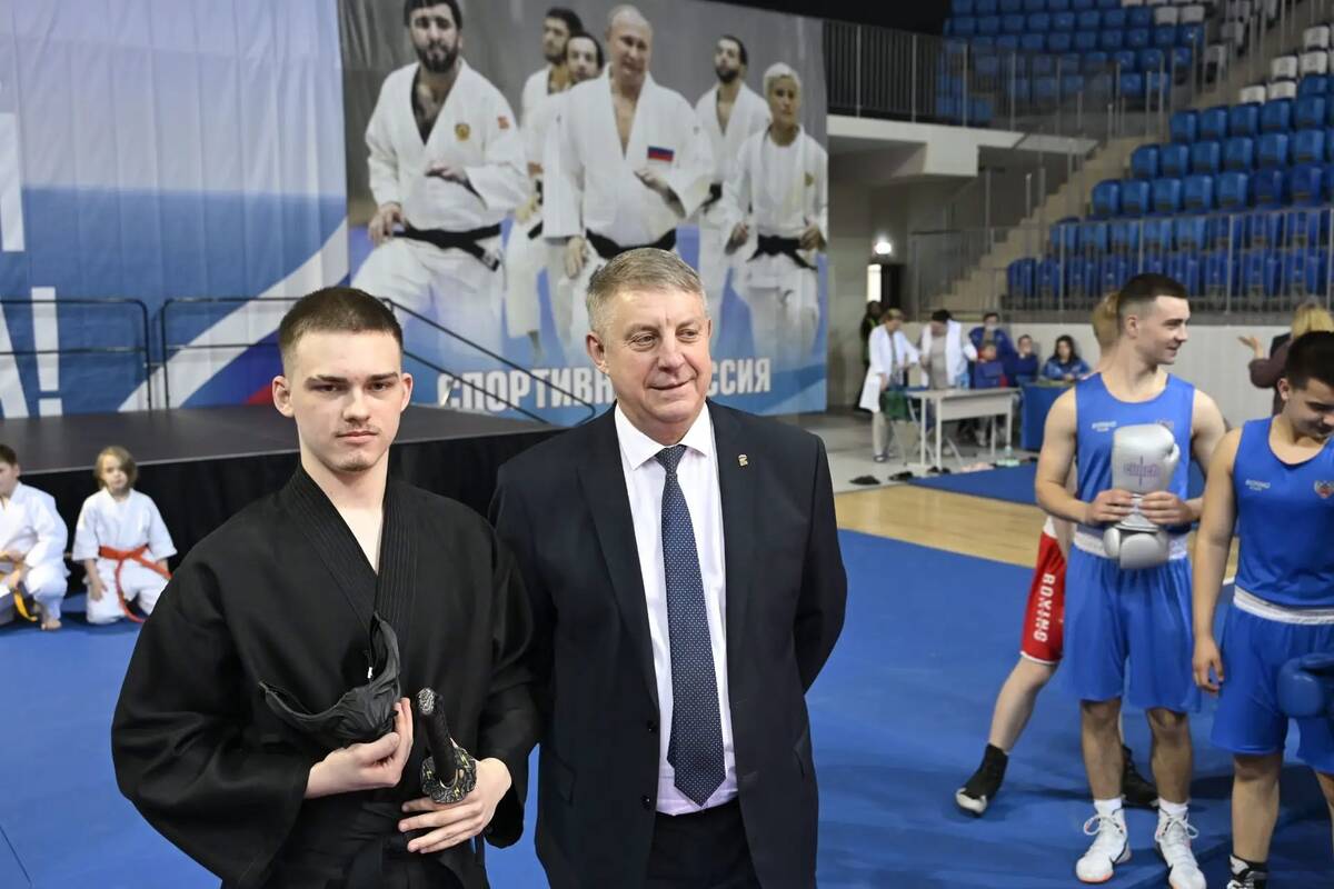 Губернатор Александр Богомаз подчеркнул символичность события: спорт объединяет народы так же, как и общая история. Самбо, каратэ, бокс, дзюдо и армейский рукопашный бой воспитывают настоящих защитников — многие из тех, кто сегодня участвует в СВО, прошли эту школу побед.