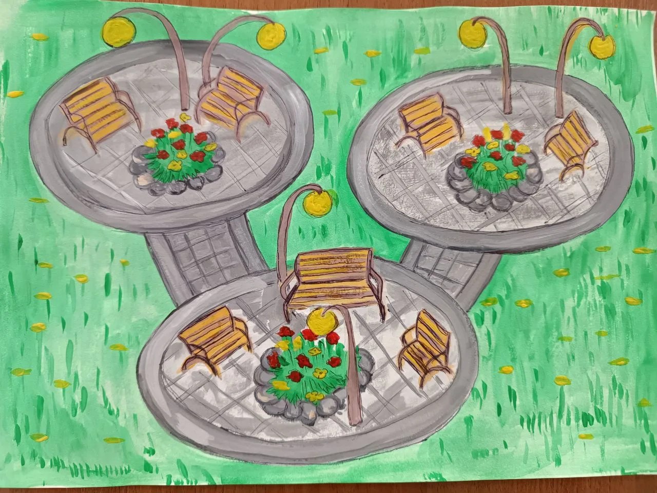 По второй части благоустройства мы объявляли конкурс рисунков проектов. Выиграл Лелетко Юрий, ученик 7 класса Коржовоголубовской школы.