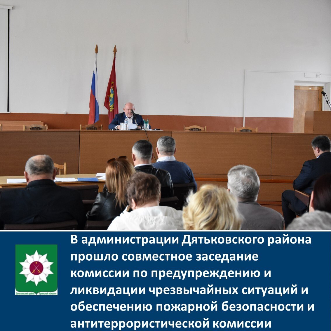 В администрации Дятьковского района прошло совместное заседание комиссии по предупреждению и ликвидации чрезвычайных ситуаций и обеспечению пожарной безопасности и антитеррористической комиссии
