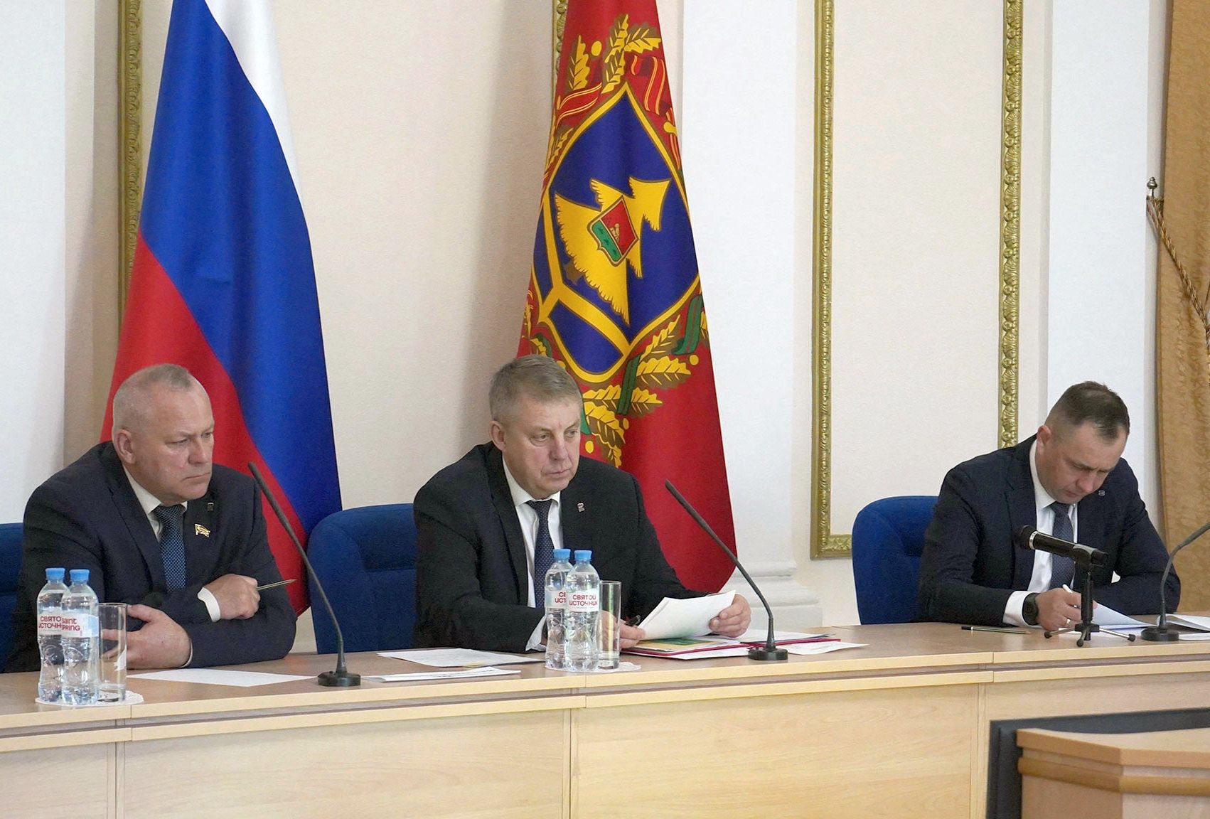 6 апреля в областном Правительстве состоялось оперативное совещание под председательством Губернатора Александра Богомаза. В совещании также приняли участие председатель Брянской областной Думы Валентин Суббот, прокурор Брянской области Владимир Мосин и депутаты заксобрания по ВКС.