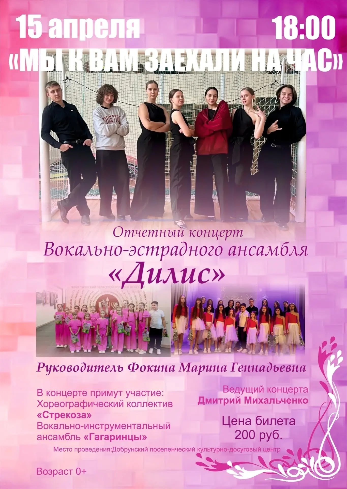 Дорогие жители Брянского района! Приглашаем вас на замечательный концерт вокально-эстрадного ансамбля «Дилис»!