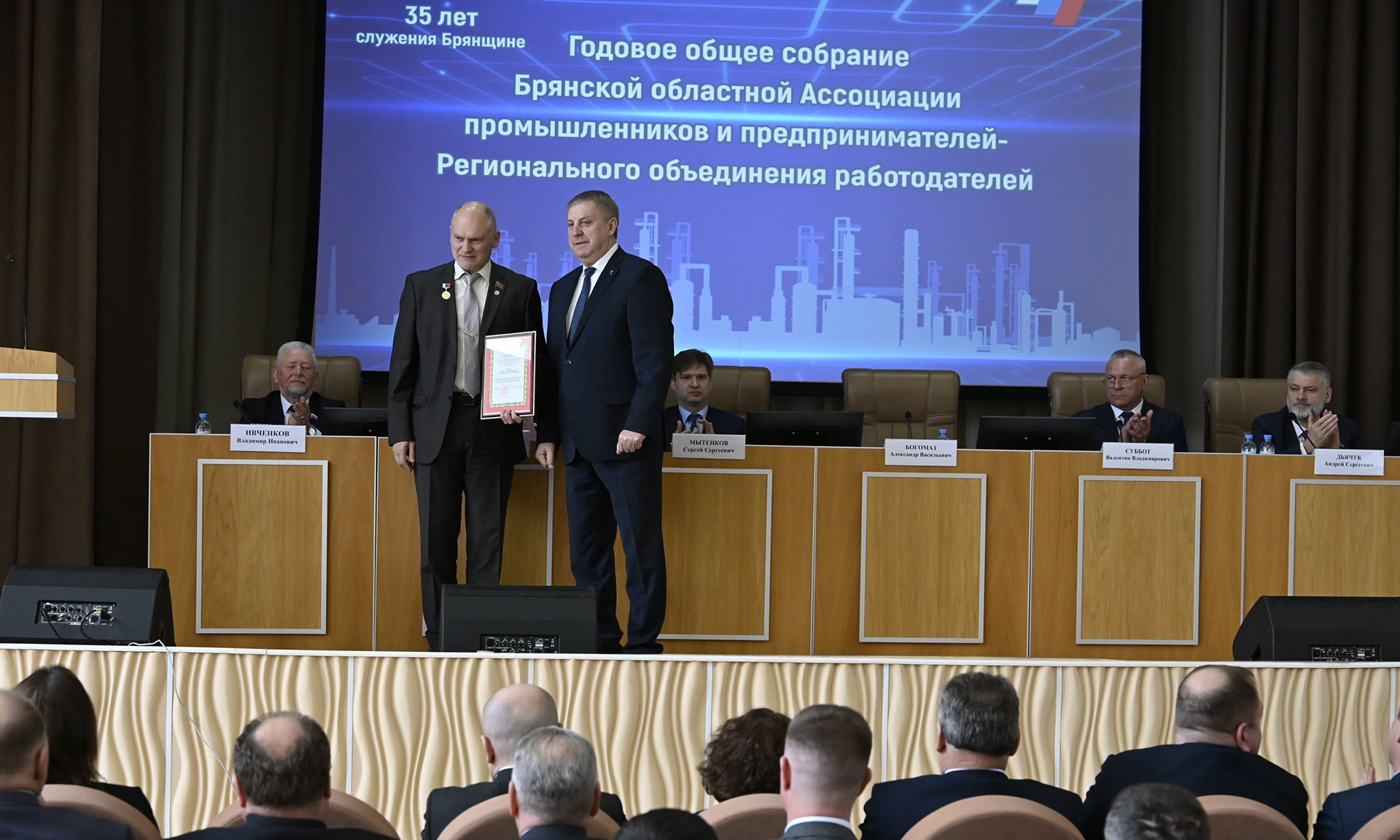 9 апреля Губернатор Александр Богомаз принял участие в годовом собрании членов Брянской областной Ассоциации промышленников и предпринимателей — Регионального объединения работодателей.