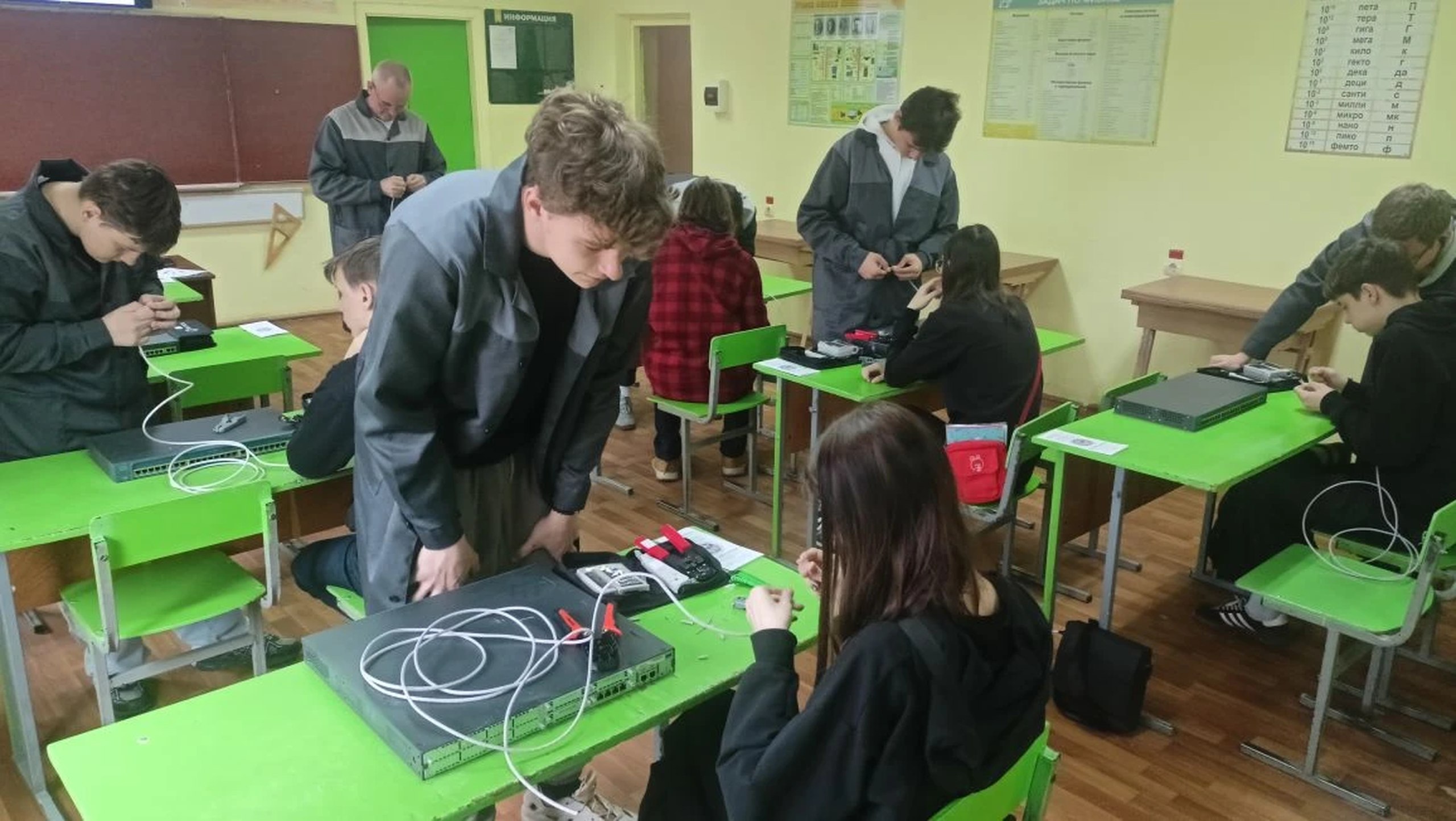 В рамках федерального проекта «Человек труда» национального проекта «Кадры» в преддверии проведения регионального этапа Всероссийской ярмарки трудоустройства «Работа России. Время возможностей», в целях организации профессиональной ориентации старшеклассников, 13 апреля 2026 г. для 12 учащихся 9-го класса МБОУ «Жуковская СОШ №2 им. Е.П. Новикова» был организован мастер-класс от системных администраторов в Жуковском филиале ГБПОУ «Брянский аграрный техникум им.Героя А.С.Зайцева». Цель мероприятия - профориентация и профессиональное самоопределение подростков.