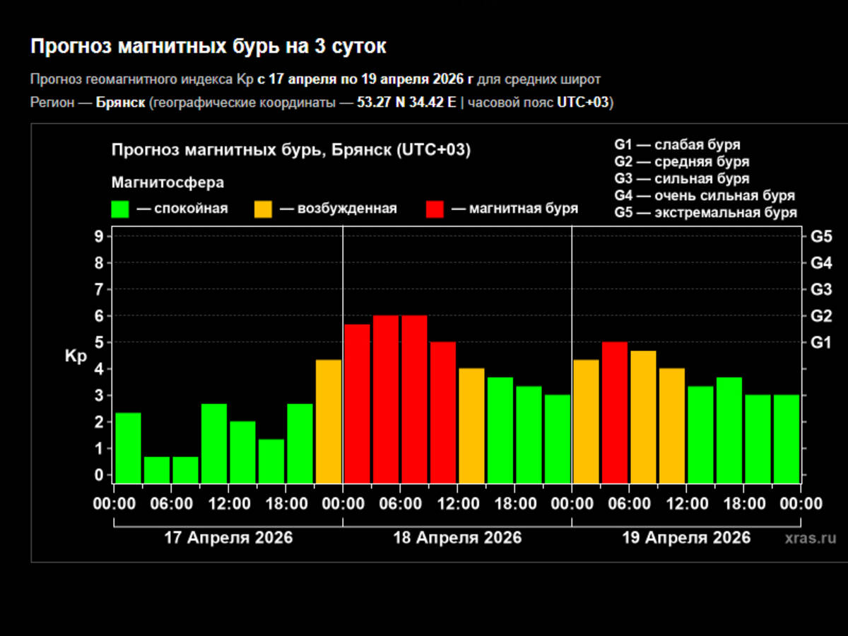 Ранее сообщалось, что жители региона столкнутся с магнитной бурей в субботу, 18 апреля. Пояснялось: возмущения будут доходить до шести баллов. Пиком назывался период с полуночи до 03:00.